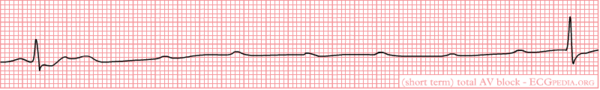 Below are two examples of 3rd degree heart block, which is considered life threatening. The second example was induced by adenosine and is short lasting.